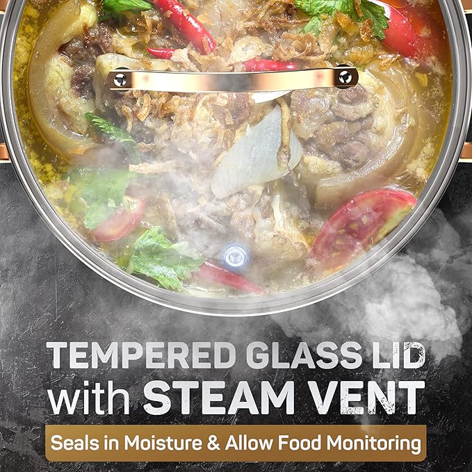 8 Quart Stock Pot, 3 Ply Whole Clad Stainless Steel Stock Pot, 8 QT Cooking Pot with Lid, Induction Pot for Cooking, 18/10 Stainless Steel Cookware Stockpots Oven, Gas and Dishwasher Safe
