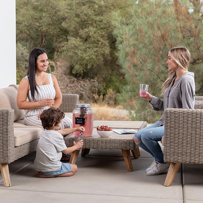 1 Gallon Glass Water Dispenser with Stainless Steel Spigot + Marker & Chalkboard, & Ice Cylinder - 100% Leakproof Beverage Dispenser Mason Jar Drink Dispenser Gallon Jug - Laundry Detergent Holder.