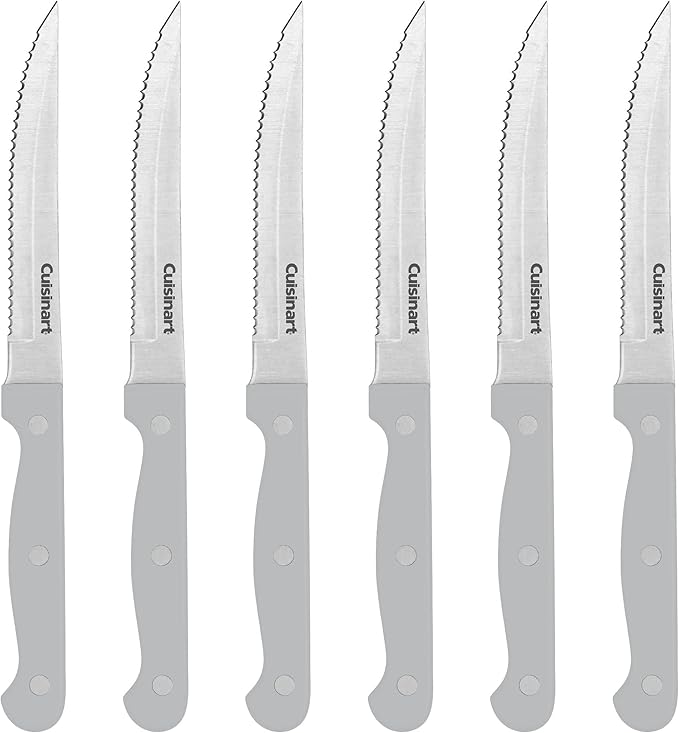 Cusinart Knife Set, 6pc Steak Knife Set with Steel Blades for Precise Cutting, Lightweight, Stainless Steel & Durable, C77TR-6PSKG, Gray