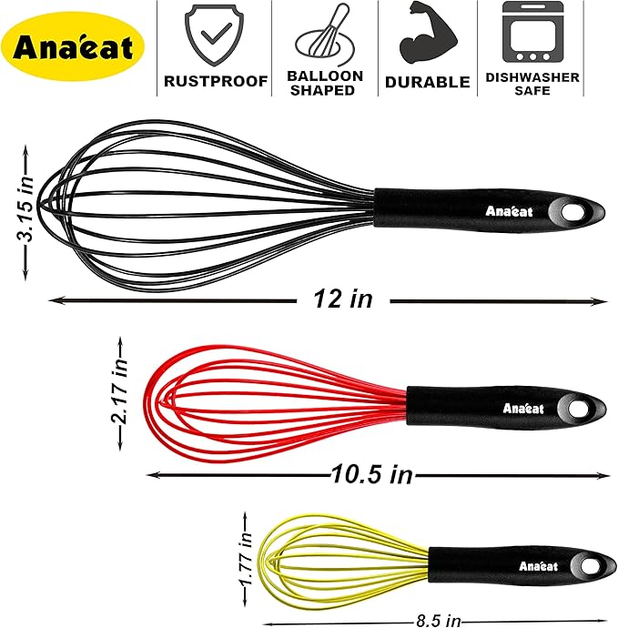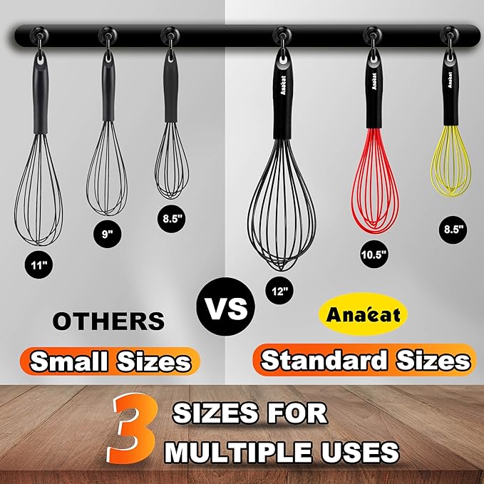 About This 【FATIGUE-FREE MIXING】8.5"+10.5''+12'' THICKENED WIRE & comfy nonslip grip made Anaeat WHISK can be fatigue-free MIXING. Proper balance between... Read more