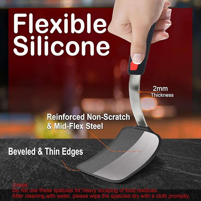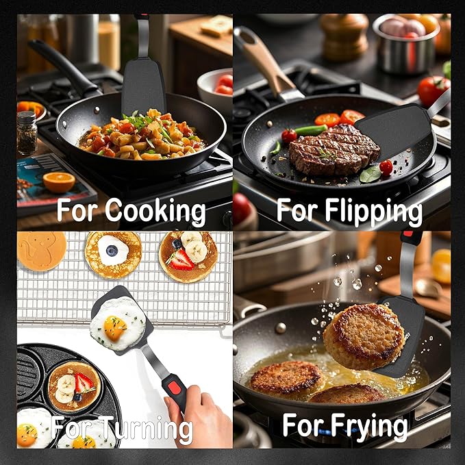 2 Pack Silicone Spatula Turner, 600°F Heat Resistant Kitchen Spatula Set for Nonstick Cookware, Cooking Utensil Set for Egg Pancake Flipper/Heat Resistant Silicone Grip