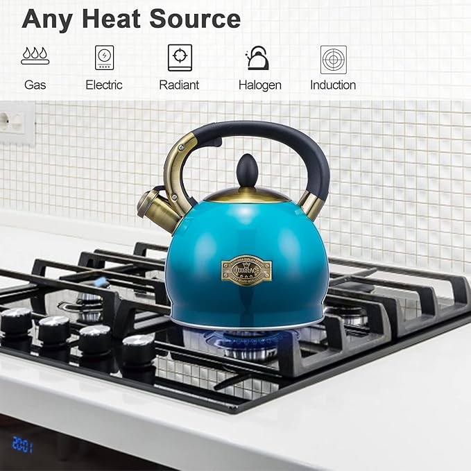 Whistling Tea Kettle Stove Top Teapot, Stainless Steel Teakettle (2.8 QUART, Blue)