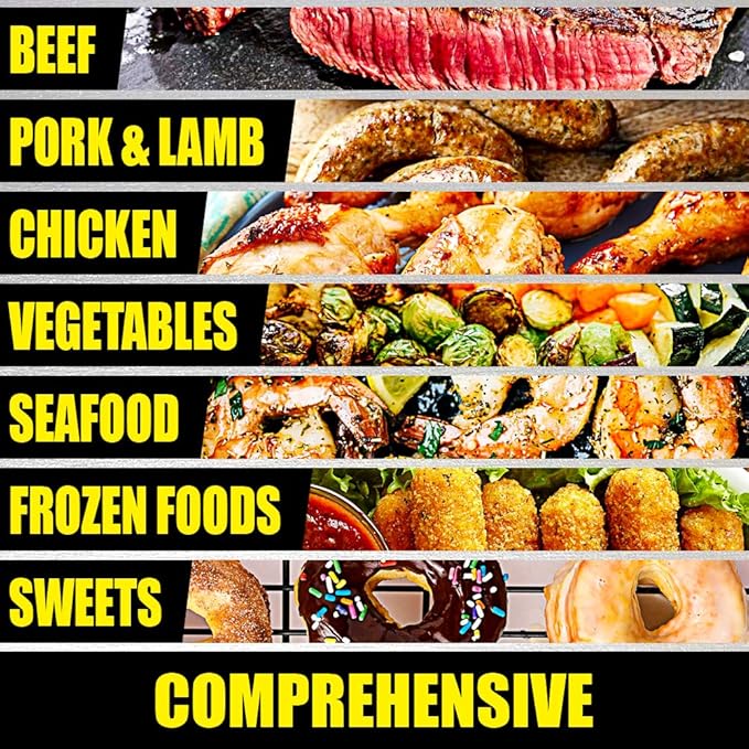 Air Fryer Cooking Times Chart Magnet - Extra Large Easy to Read Airfryer Magnetic Cheat Sheet - Healthy Airfryers Cookbook Accessory Liners Food Kitchen Conversion - Air Fryer Oven Accessories (Grey)