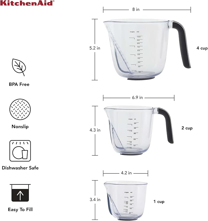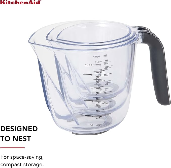 KitchenAid Universal Easy View Angled Measuring Cups, Set Of 3, Clear with Black Handles