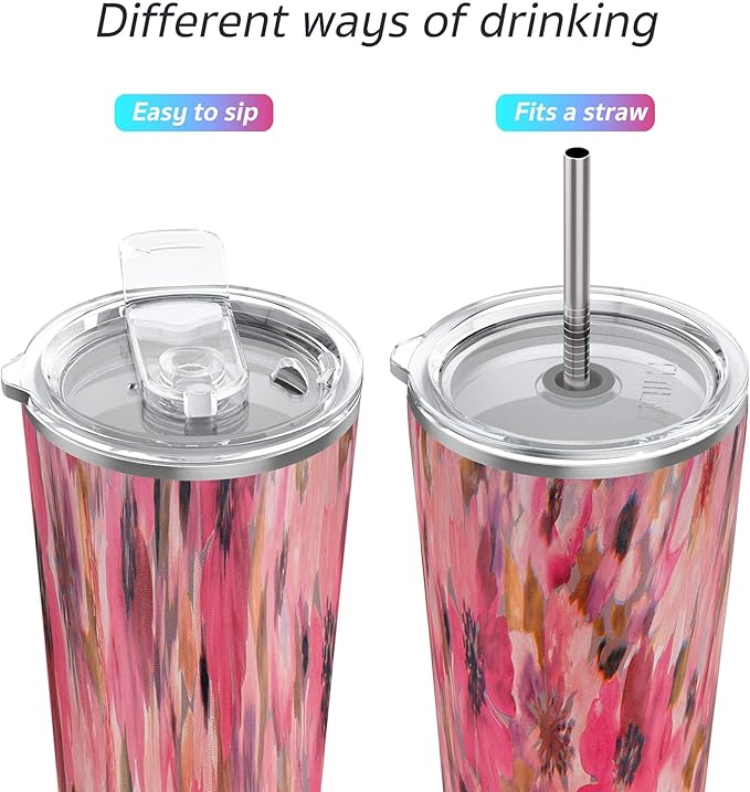THILY Vacuum Insulated Stainless Steel Tumbler Travel Mug 26 oz Coffee Cup with 2 Lids and Straws, Splash Proof, Reusable, Keep Iced Drinks Cold, Watercolor Flower