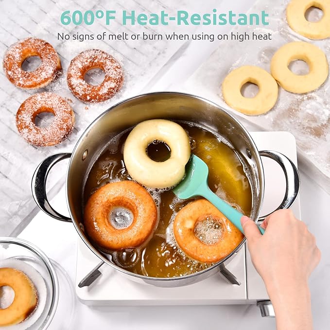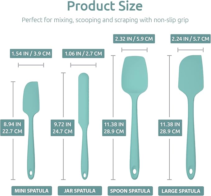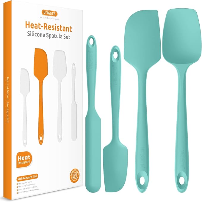 Heat Resistant Silicone Spatula Set: U-Taste 600ºF High Temp Seamless Food Grade Utensil, Flexible Rubber Silicon Kitchen Cooking Mixing Baking Scraper for Nonstick Cookware Set of 4 (Aqua Sky)