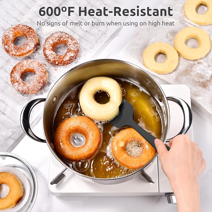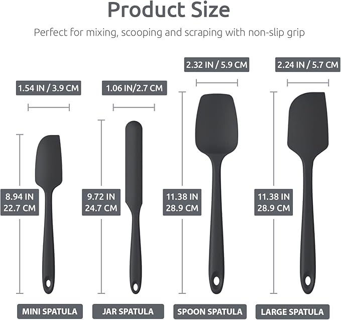Heat Resistant Silicone Spatula Set: U-Taste 600ºF High Temp Seamless Food Grade Utensil, Flexible Rubber Silicon Kitchen Cooking Mixing Baking Scraper for Nonstick Cookware Set of 4 (Black)