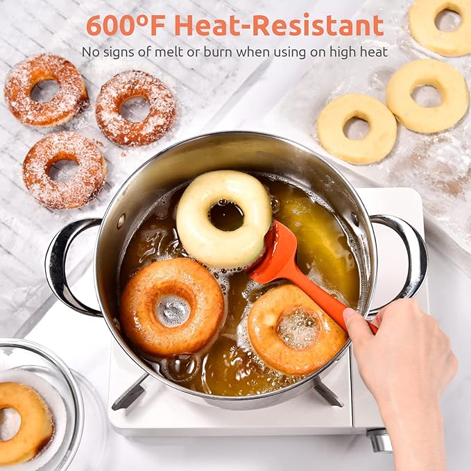 Heat Resistant Silicone Spatula Set: U-Taste 600ºF High Temp Seamless Food Grade Utensil, Flexible Rubber Silicon Kitchen Cooking Mixing Baking Scraper for Nonstick Cookware Set of 4 (Orange)