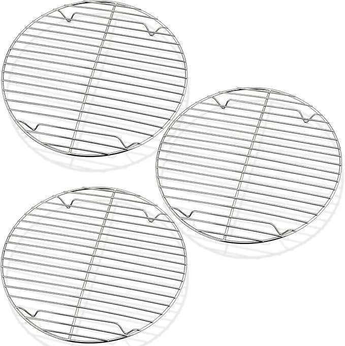 P&P CHEF Round Cooking Rack, 3 Pcs Stainless Steel Baking Cooling Steaming Grilling Rack, Fits Air Fryer/Stockpot/Pressure Cooker/Round Cake Pan, Oven & Dishwasher Safe (9 Inch)