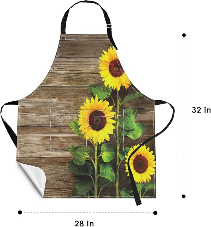 Britimes Apron Home Kitchen Cooking Baking Gardening for Women Men with Pockets Autumn Sunflowers Wooden Board Flower 32x28 inch