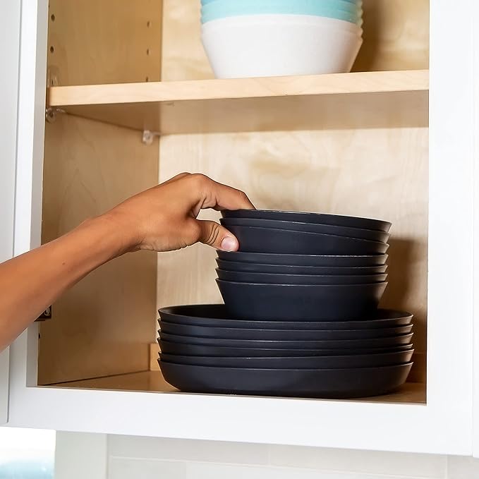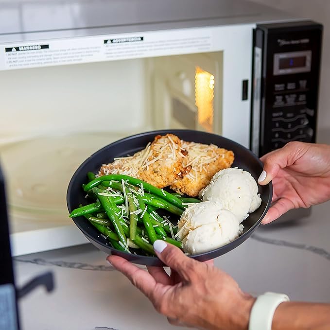 Grow Forward Premium Wheat Straw Plates and Bowls Sets - 8-Piece Wheat Straw Dinnerware Sets - Unbreakable & Reusable Microwave Safe Plastic Dinner Plates for Outdoors, RV, Camping Dishes - Midnight
