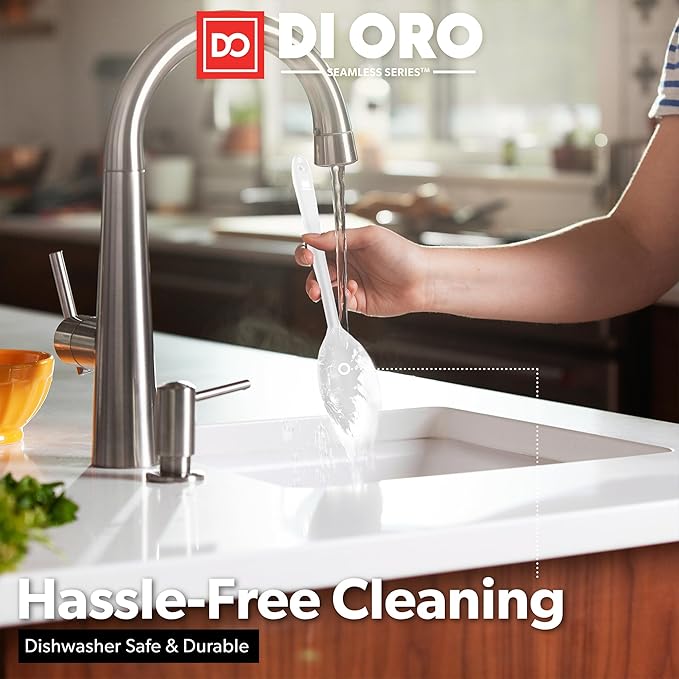 DI ORO Silicone Spoons for Cooking - Large Kitchen Utensils for Mixing, Serving, & Stirring - 600F Heat-Resistant Non Stick - Big Solid & Slotted Basting Spoons - Dishwasher Safe (2pc, Stone)