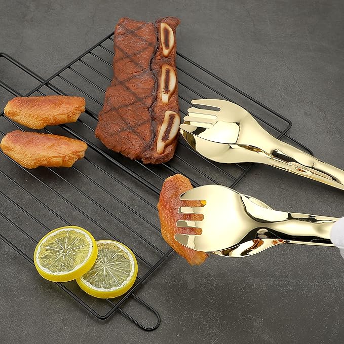 MSY BIGSUNNY Kitchen Tongs Cooking Tong - Stainless Steel Food Serving Tongs Set of 2(Gold, 9 inch)