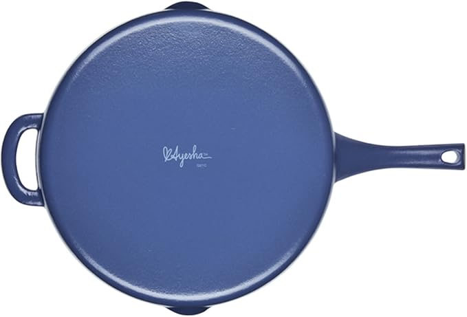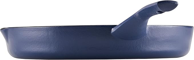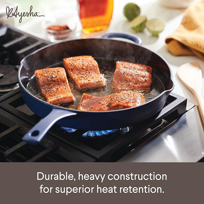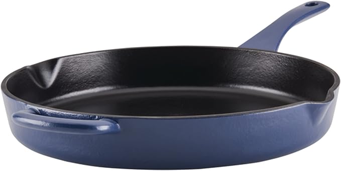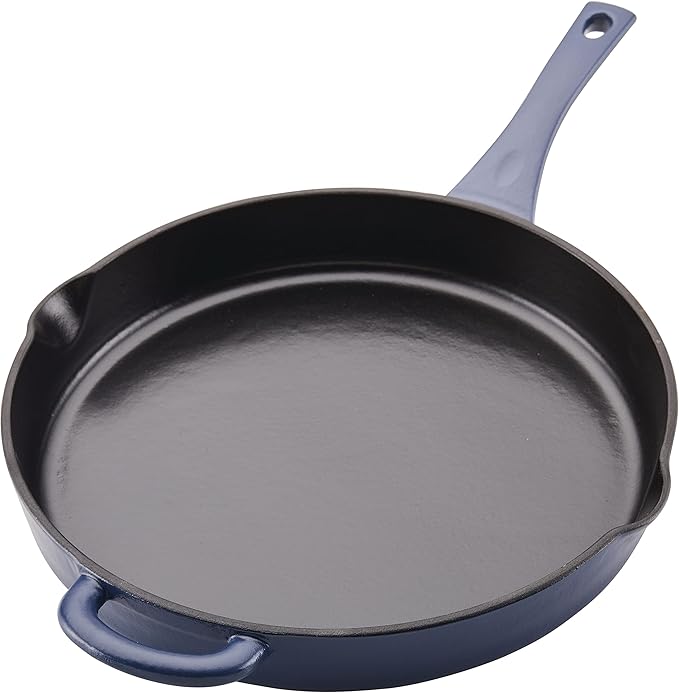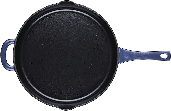 Ayesha Curry Kitchenware Enameled Cast Iron Skillet/Frying Pan with Helper Handle and Pour Spouts, 12 Inch - Anchor Blue