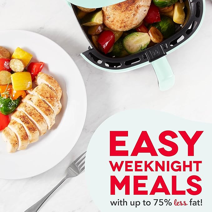 DASH Tasti-Crisp™ Electric Air Fryer Oven, 6 Qt. Family Size, Aqua – Compact Air Fryer with Large Basket for Healthier Food in Minutes, Ideal for Small Spaces - Auto Shut Off, Analog, 1700-Watt