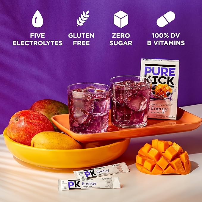 Pure Kick Energy Singles To Go Drink Mix, Mango Acai, Includes 12 Boxes with 6 Packets in each Box, 72 Total Packets
