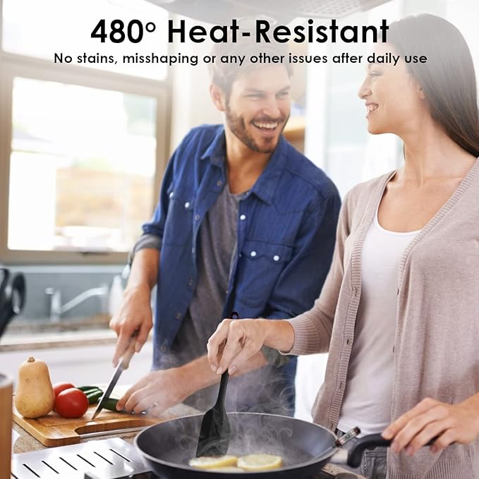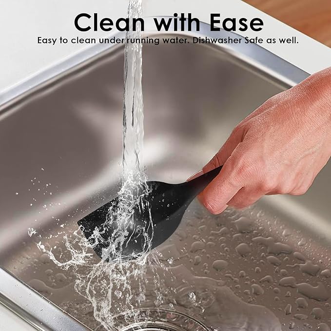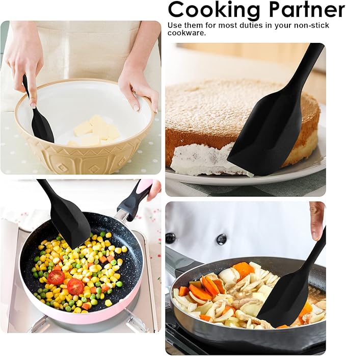 Silicone Spatula Set 2 Pcs Heat Resistant Rubber Spatula for Non-stick Cookware BPA Free (Black)