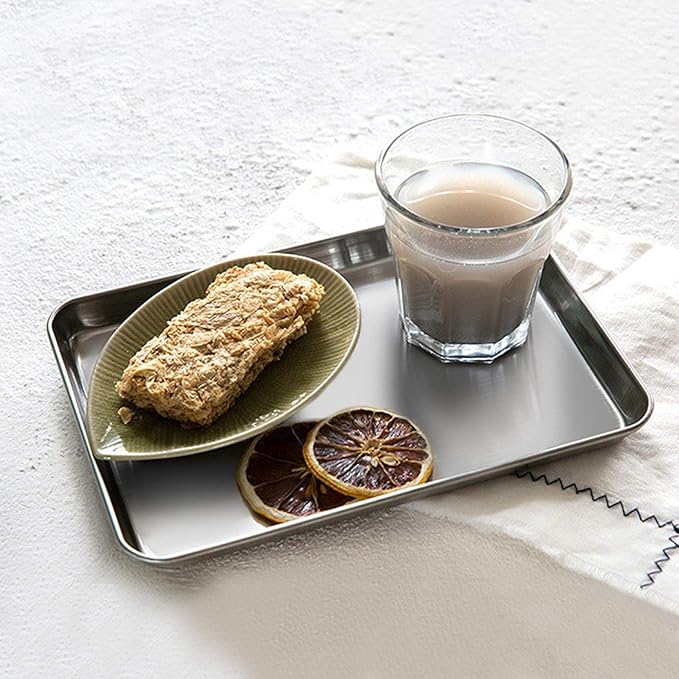 P&P CHEF 9 Inch Baking Cookie Sheet, Oven Pan Tray Stainless Steel Sheet Pan for Kitchen, Oven Bakeware for Multi Uses, Shiny Look & Dishwasher Safe, Healthy & Heavy Duty, 4Pcs