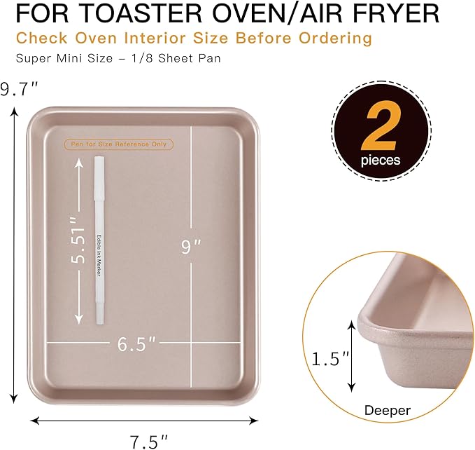 About This ALL EXCLUSIVE SET - This oven tray is 9.7x7.5 inch cookie sheet, inner sizes:9x6.5x1.5 inches, outer sizes:9.7 x... Read more