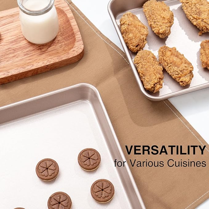 HONGBAKE Toaster Oven Pan Nonstick Set of 2, Premium 1/8 Sheet Pan for Baking, Small Cookie Sheet Tray, Dishwasher Safe and Heavy Duty - Rose Gold