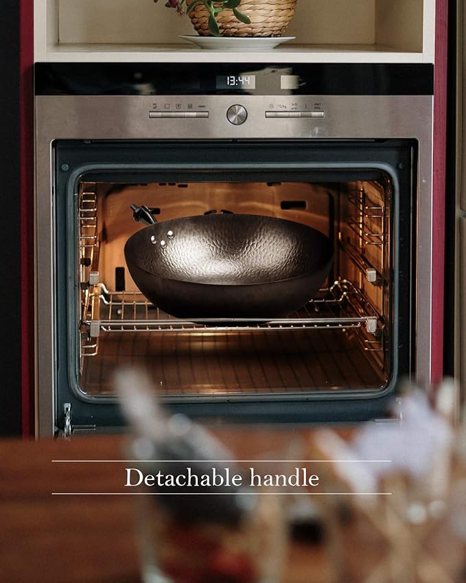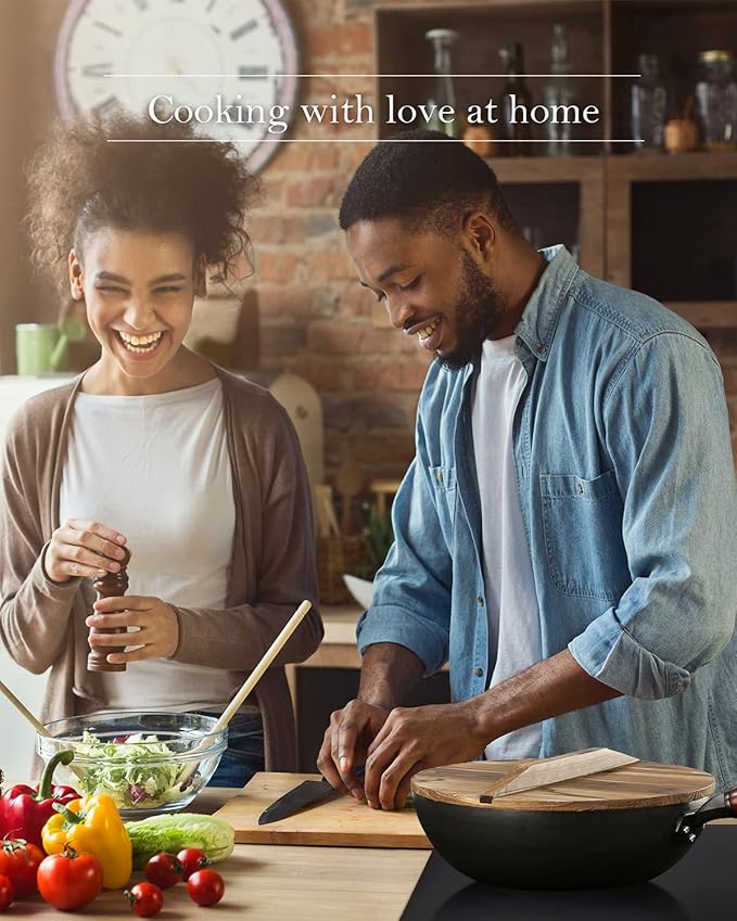 BIELMEIER 12.5" Wok Pan- Woks and Stir Fry Pans, Carbon Steel Wok, Flat Bottom Wok with Lid Suits for all Stoves
