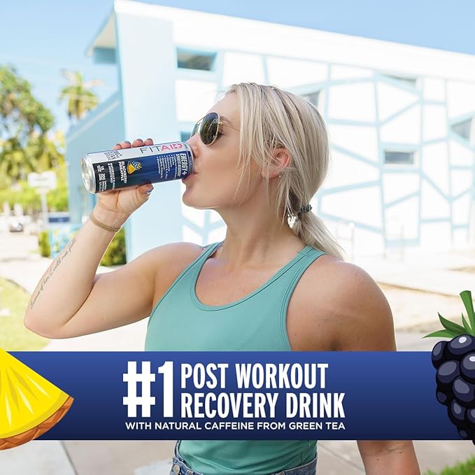 FITAID ENERGY, 200mg Natural Caffeine, Keto, Blackberry Pineapple, Optimum Performance Formula: BCAAs, Quercetin, Electrolytes, Omega-3s, 15 calories, Paleo, Vegan & Gluten-Free 12 Fl Oz (Pack of 24)