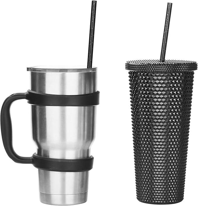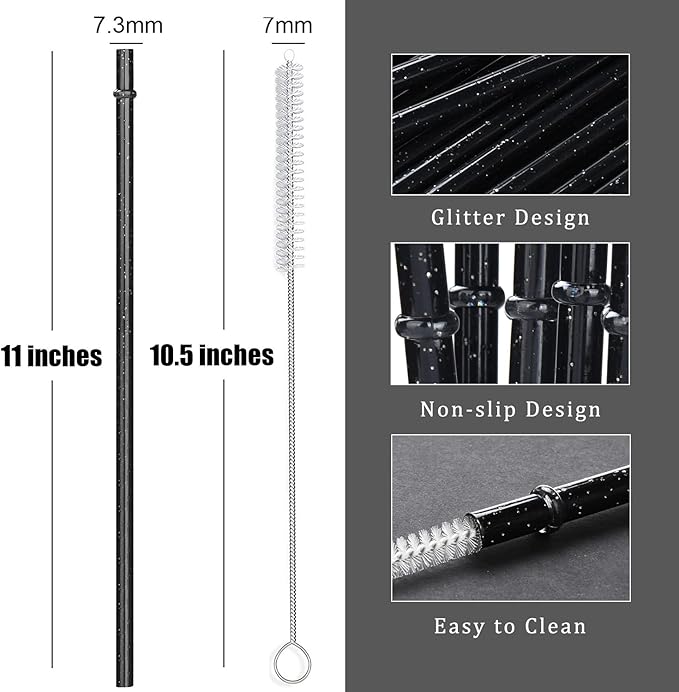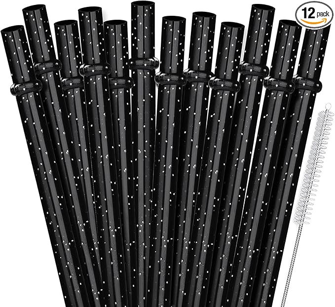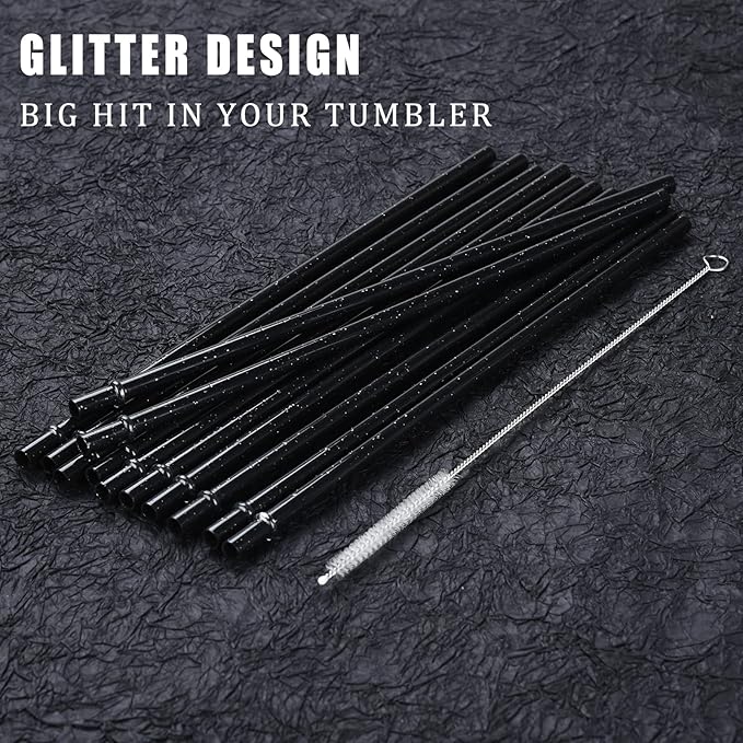 ALINK 12PCS Reusable Black Glitter Straws, 11" Long Hard Plastic Tumbler Drinking Straws for 16 OZ 20 OZ 30 OZ Stanley, YETI, Mason Jar, Starbucks Tumblers with Cleaning Brush