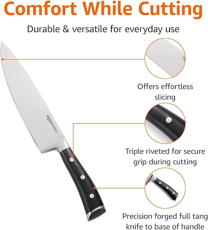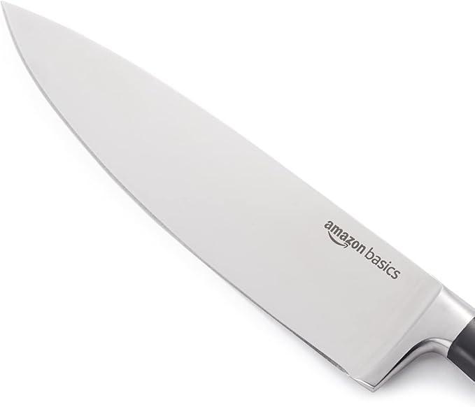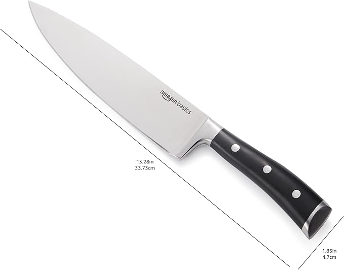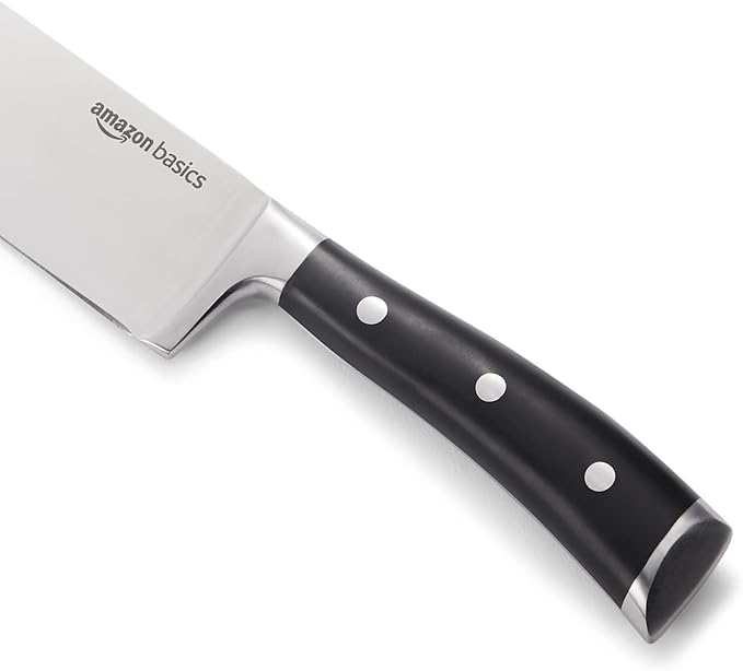 Amazon Basics Classic 8-inch Full Tang Stainless Steel Chef's Knife with Three Rivets, Silver