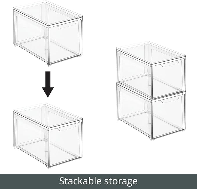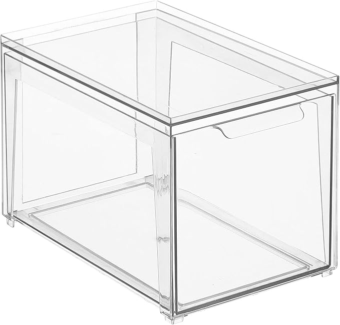 mDesign Plastic Stackable Closet Storage Organizer Bins with Pull Out Drawer for Cabinet, Desk, Shelf, Cupboard, or Dresser Organization - Lumiere Collection - Clear