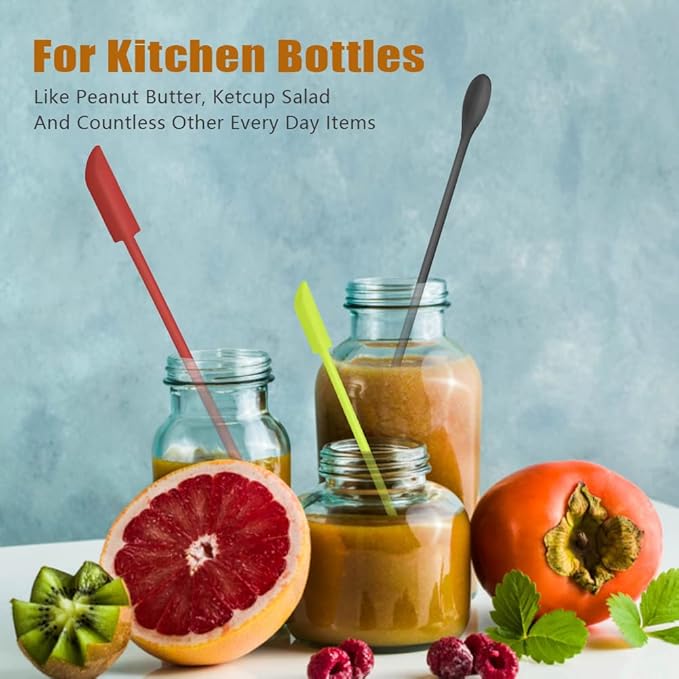 • ✅【Easy to Clean & Widely Usage】: Silicone jar spatulas can be run in the dishwasher. Hand washing is recommended. Suitable for peanut butter and ketchup, Jars, Honey, Cosmetics, Hand Lotion, Pain Cream, Body Lotion, Foundation, Hair Products, Shampoo, Conditioner, Lip gloss, Nail Polish, and so on.