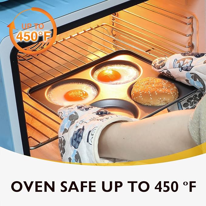 HONGBAKE Large Muffin Top Pan Set of 2, 4 Cup Nonstick Hamburger Bun Baking Pan, Jumbo Whoopie Pie Pan for Egg Sandwich, Cornbread, Layer Cake