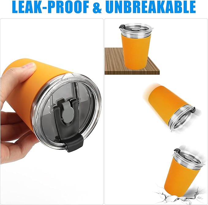 Kids Stainless Steel Cups, 12oz Kids Metal Drinking Glasses with Lids and Sleeves, Unbreakable Spill Proof Cups for Kid and Adult, Stacking Sippy Cups for Hot Chocolate & Cold Drinks 5Pack