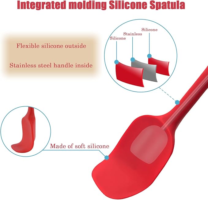 Silicone Spatula Set, Rubber Spoon Spatula for Baking, Heat Resistant Cooking Utensil, Flexible Silicone Spoon Baking Mixing Tool Cooking Gadget (4-Piece)