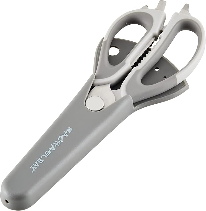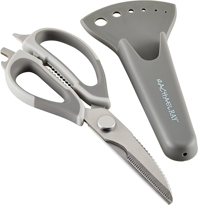Rachael Ray Professional Multi Shear Kitchen Scissors with Herb Stripper and Sheath, 2 Piece, Gray