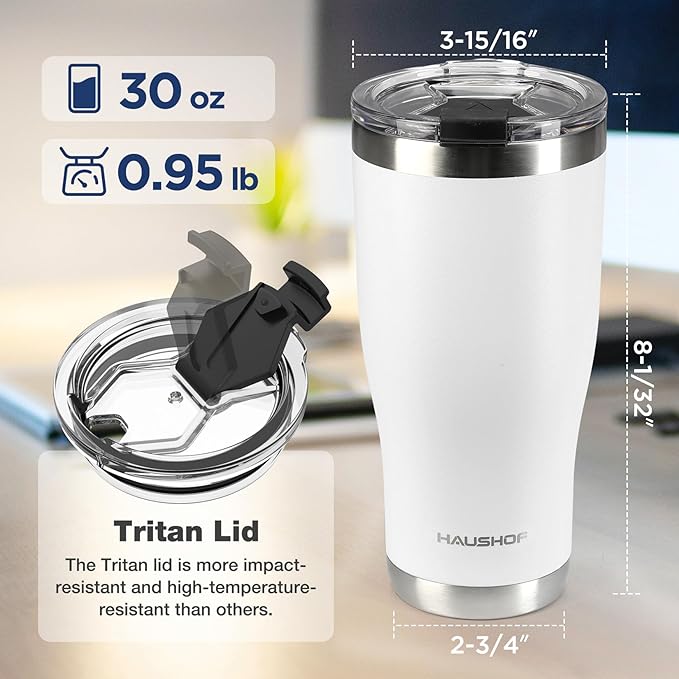 HAUSHOF 30 oz Tumbler, Stainless Steel Vacuum Insulated Coffee Tumbler Water Cup, Double Wall Travel Mug with Lid, Perfect for Hot and Cold Drinks