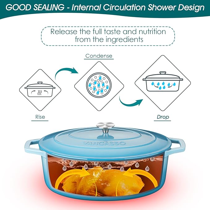 vancasso Enameled Cast Iron Dutch Oven, 9.3 Quart Dutch Oven Pot with Lid, Oval Dutch Oven Cast Iron Pot with Non Stick Coating for Bread Baking, Light Blue