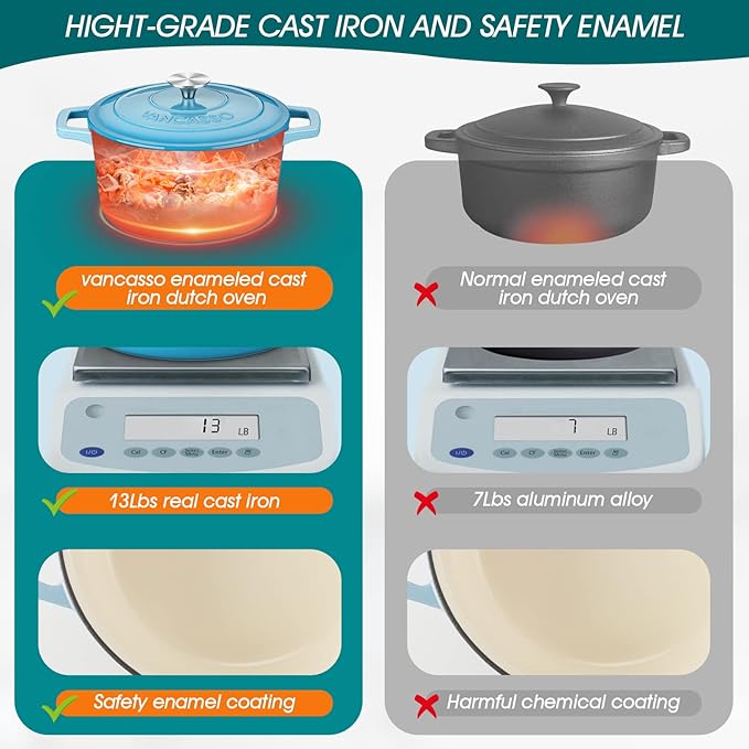 About This 【ONE POT FOR MULTIPLE USE - Suitable for Families of 3-5 People】This 6-Quart vancasso enameled cast iron dutch... Read more