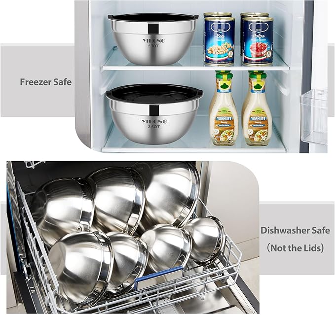 YIHONG 7 Piece Metal Mixing Bowls with Lids for Kitchen, Stainless Steel Set Ideal for Baking, Prepping, Cooking and Serving Food, Nesting Design for Space Saving Storage(Black)