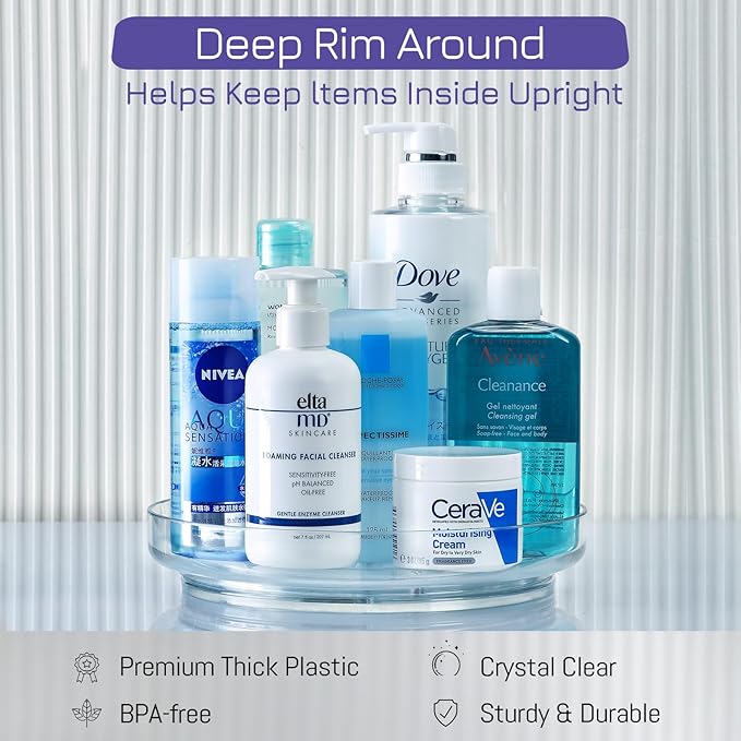 4 Pack 9 Inch Clear Acrylic Lazy Susan, Non-Skid Turntable Organizer for Cabinet, Kitchen, Pantry Organization Storage, Refrigerator, Vanity Makeup, Bathroom Countertop Organizing, Rotating Spice Rack