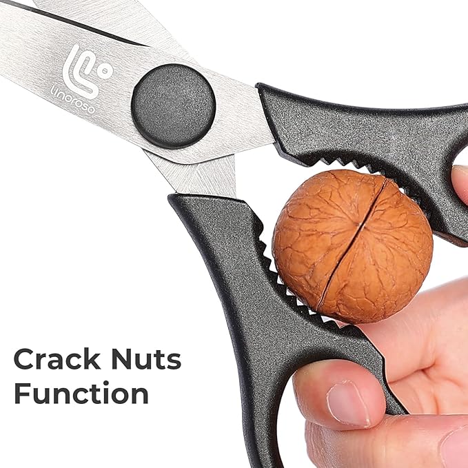 Linoroso Kitchen Shears Heavy Duty Kitchen Scissors with Magnetic Holder, Dishwasher Safe Scissors All Purpose Come Apart Blade Made with Japanese Steel 4034 for Meat/Vegetables/BBQ/Herbs, Black