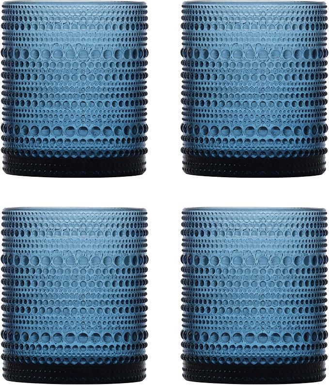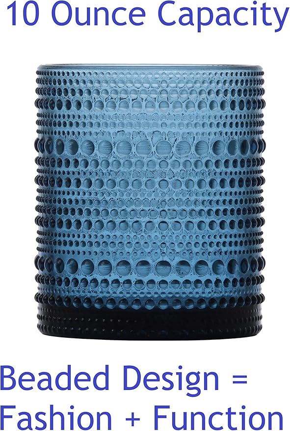 Fortessa Jupiter Beaded Hobnail Glass, 10 Ounce Double Old Fashioned (Set of 4), Cornflower Blue