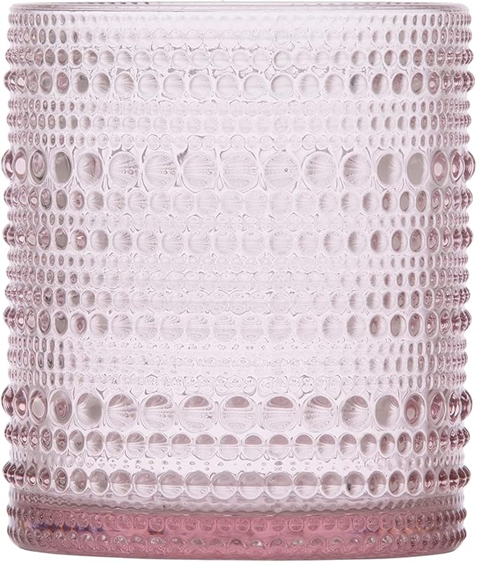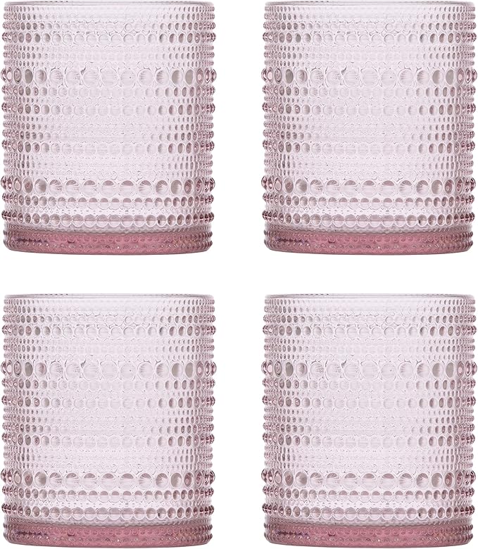 Fortessa Jupiter Beaded Hobnail Glass, 10 Ounce Double Old Fashioned (Set of 4), Pink