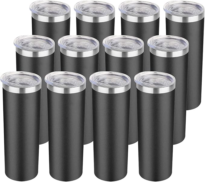 HASLE OUTFITTERS 20 oz Skinny Tumblers Bulk Set, Stainless Steel Insulated Slim Tumblers with Lids, Reusable Double Wall Travel Coffee Mugs, Durable Powder Coated Travel Water Cups(Black, 12)