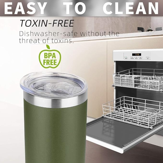 HASLE OUTFITTERS 20 oz Skinny Tumblers Bulk Set, Stainless Steel Insulated Slim Tumblers with Lids, Reusable Double Wall Travel Coffee Mugs, Durable Powder Coated Travel Water Cups(Army Green, 12)