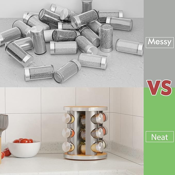 About This COMPACT – Our spice rack has a narrow profile even though it holds 12 jars. It only measures... Read more