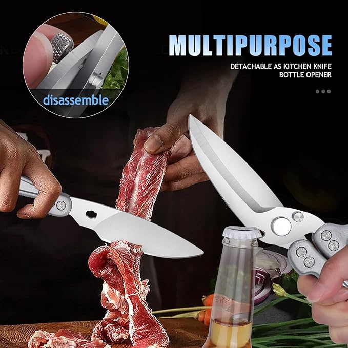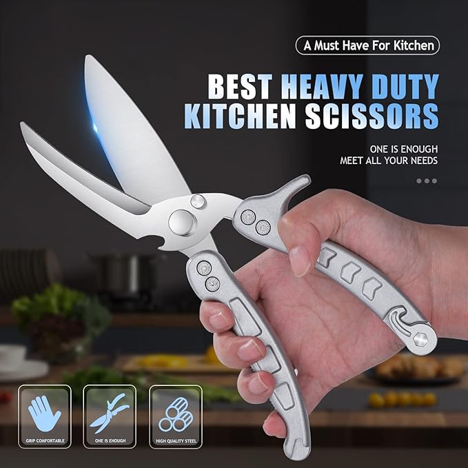 DRAGON RIOT Heavy Duty Poultry Shears - A Must Have Kitchen Shears for Chicken and Meat Cutting - Dishwasher Safe and Stainless Food Kitchen Scissors for Thanksgiving(Silver)