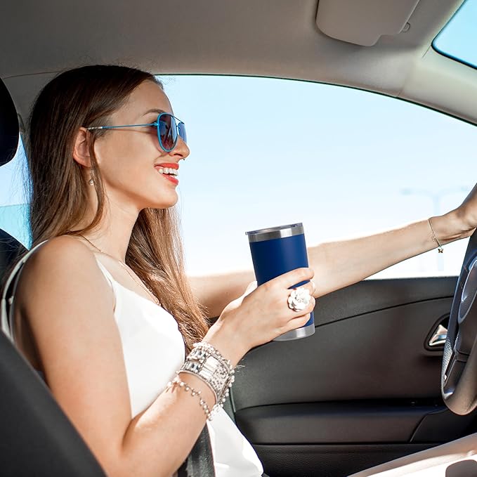 HASLE OUTFITTERS 20oz Tumblers Stainless Steel Mugs with Lid Double Wall Vacuum Insulated Coffee Cups for Cold & Hot Drinks (20oz-Dark Blue, 4 Pack)