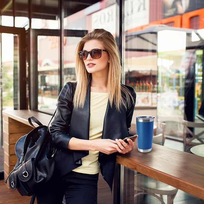 HASLE OUTFITTERS 20oz Tumblers Stainless Steel Mugs with Lid Double Wall Vacuum Insulated Coffee Cups for Cold & Hot Drinks (20oz-Dark Blue, 12 Pack)