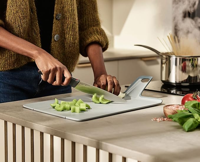About This The original folding chopping board Innovative folding design for easy food transfer Textured, knife-friendly cutting surface Soft-grip handle... Read more
