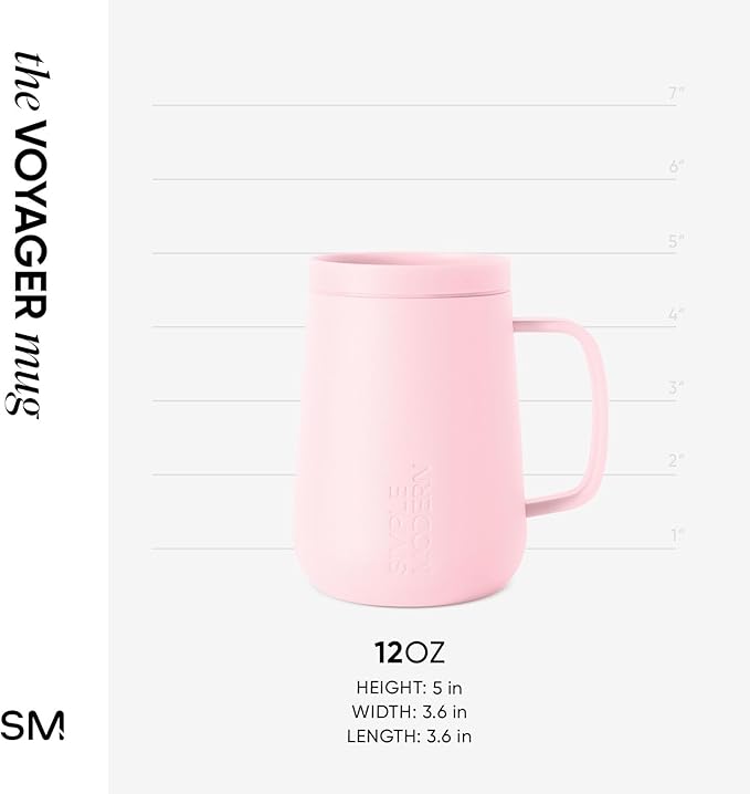 Simple Modern Voyager Signature Mug | Travel Coffee Tumbler with 360° Lid and Handle | Ceramic-Lined Insulated Stainless Steel Iced Cold Brew Cup | 12oz, Blush
